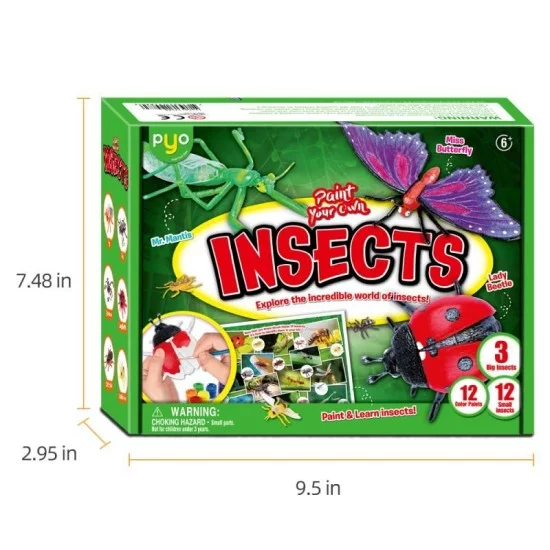 Our painting kit comes with 3 large-sized insect figures, 12 color paints, and other paint supplies like 2 brushes, 1 color palette, and 1 learning brochure. Your kid can paint their own figures with any color they want and express their artistic side.